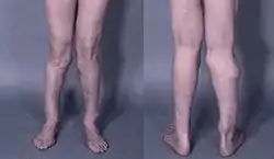 ![]() صورة لساقين لرجل يبلغ من العمر 26 عامًا يظهر نتوءات متعددة أدت إلى التشوه صورة لساقين لرجل يبلغ من العمر 26 عامًا يظهر نتوءات متعددة أدت إلى التشوه | |