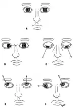 يمكن أن يُؤثِّر تضَرُّر الأعصاب المُحرِّكُ لِلعَين (III) والبَكَرِيّ (IV) والمُبَعِّدُ (VI) على حركة كرة العين. يمكن أن تتأثر أحد العينين أو كلاهما، وفي كلتا الحالتين يمكن أن يحدث رؤية مضاعفة (ازدواج الرؤية) لأن حركات العين لم تعد متزامنة. يتم اختبار الأعصاب (III) و(IV) و(VI) عبر ملاحظة كيفية تَتَبُّع العين لشيء في الاتجاهات المختلفة. يمكن أن يكون هذا الشيء إصبعاً أو دبُّوس، يمكن تحريكه في اتجاهات مختلفة لاختبار سرعة السَعي.[12] إذا كانت العينان لا تعملان معاً، فإن السبب الأكثر ترجيحاً هو تَضَرُّر عصب قحفي مُعيَّن أو نواته.[12]
