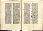 بيبل غوتنبرغ، أول طبعة للكتاب المقدس، طبعها يوهان غوتنبرغ، وله أهمية كبيرة في بدء ثورة وعصر الطباعة، فالكنيسة حافظت على الأدب والمعارف القديمة.[40]