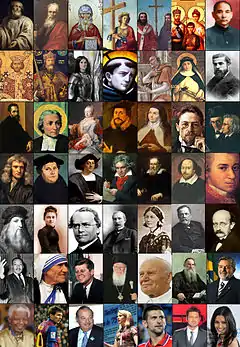 الديانة المسيحية لعبت دور رئيسي في تشكيل أسس وسمات الثقافة والحضارة الغربية، [30] إن التأثير الثقافي للمسيحية ضخم للغاية وشديد التشعب، إضافة إلى أنه يشمل جميع مجالات الحضارة؛ في قائمة المائة شخصية الأكثر تأثيرًا في تاريخ البشرية، ذكرت 65 شخصية مسيحية من مختلف المجالات.[31]