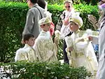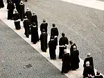 فتيات يرتدينَّ المانتيلا، وهو اللباس التقليديُّ الكاثوليكي في يوم أربعاء الفصح.