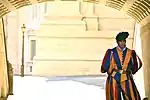 الحرس السويسري وتلخص مهمتها في حفظ سلامة البابا وحفظ سلامة القصر البابوي، كما تقوم بأداء مهام التشريفات لدى استقبال إحدى الشخصيات المهمة في الفاتيكان.