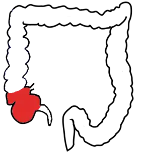 صورة من الداهل للصائم والنهاية السفلى للقولون الصاعد تظهر الصمام القولوني