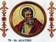 - "Pope St. Agatho". Catholic Encyclopedia. New York: Robert Appleton Company. 1913. "نسخة مؤرشفة". Archived from the original on 21 أبريل 2017. اطلع عليه بتاريخ 4 يوليو 2015. الوسيط