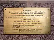 |CitationClass=تم تجاهله (مساعدة) - Lang, Hans-Joachim (19 August 2004). "Skelette für Straßburg Eines der grausigsten Wissenschaftsverbrechen des "Dritten Reiches" ist endlich aufgeklärt" [Skeletons for Strasbourg: One of the most gruesome crimes of science in the "Third Reich" is finally cleared]. Die Zeit (باللغة الألمانية). مؤرشف من الأصل في 04 نوفمبر 2019. اطلع عليه بتاريخ 23 مارس 2016. الوسيط