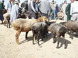 الأغنام دهنية الذيل في سوق الماشية بكاشغار