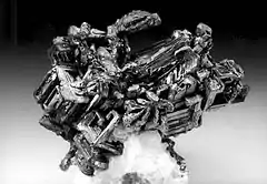 ![]() Aguilarite - San Carlos Mine, La Luz, Guanajuato municipality, Mexico. Specimen height is 3.9 cm. | |
