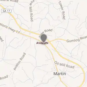 أفالون (بالإنجليزية: Avalon, Georgia) هي بلدة تقع في مقاطعة ستيفينز، جورجيا بولاية جورجيا في الولايات المتحدة. تبلغ مساحتها 4.6 (كم²)، وترتفع عن سطح البحر 281 م، بلغ عدد سكانها 213 نسمة في عام 2010 حسب إحصاء مكتب تعداد الولايات المتحدة وتصل الكثافة السكانية فيها 60.4 نسمة/كم2.[3]