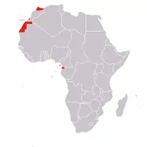 - الصحراء الإسبانية (1884–1975) التي تضم وادي الذهب والساقية الحمراء.
