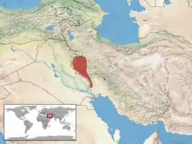 ![]() في غرب إيران ومن المرجح وجودها في العراق[3] | |