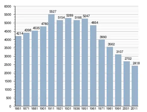 في سنة 1861 بلغ عدد السكان 4٬214 نسمة، وتطور العدد ليصل في سنة 2011 لـ 2٬418 نسمة.