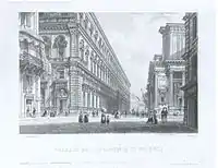 نقش قديم (1853) للمقر التاريخي لأكاديمية العلوم في تورينو.