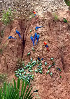 لُوحِظ أن أنواع كثيرة من ببغاوات أمريكا الجنوبية تلعق في الطين، [17] كما لُوحظ تناول الكوكاتو كبريتي العرف للطين في بابوا غينيا الجديدة.[18] ويُظهر تحليل التربة التي تستهلكها الطيور البرية أنها غالبًا ما تفضل التربة ذات المحتوى العالي من الطين.[17]