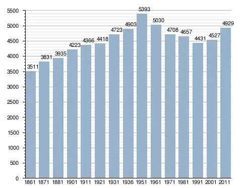 في سنة 1861 بلغ عدد السكان 3٬511 نسمة، وتطور العدد ليصل في سنة 2011 لـ 4٬929 نسمة.