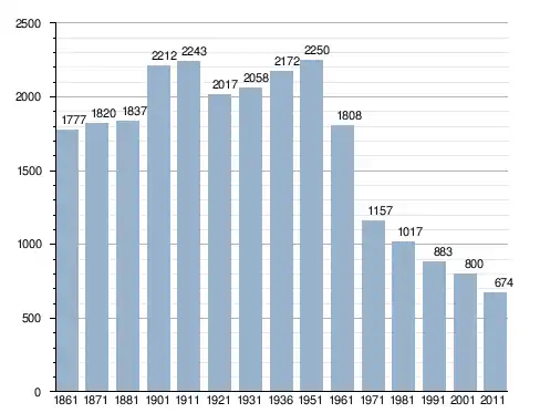 في سنة 1861 بلغ عدد السكان 1٬777 نسمة، وتطور العدد ليصل في سنة 2011 لـ 674 نسمة.