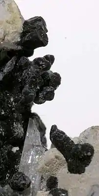 ![]() Transparent crystals of alamosite in the matrix of leadhillite and melanotekite | |