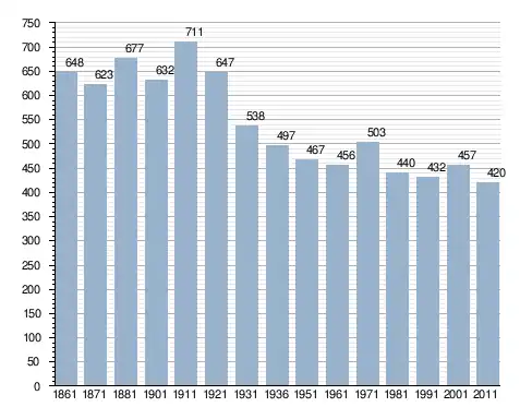 في سنة 1861 بلغ عدد السكان 648 نسمة، وتطور العدد ليصل في سنة 2011 لـ 420 نسمة.