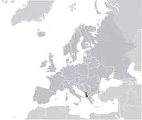 ![]() موقع من ألبانيا (الخضراء)، في قارة أوروبا (باللون الرمادي الغامق) | |