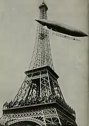 وبعد رحلات عديدة بالبالون انتقل سانتوس دومون لتصميم البالونات القابلة للتوجيه أو مايعرف بالمنطاد، والذي يمكن التحكم به وتسييره بواسطة الهواء بدلاً من أن ينجرف مع الرياح. وفي عام 1884م قام شارل رينارد وأرثر كريبس بالتحليق بالمنطاد الذي سمي " لا فارنس" (بالفرنسية: La France) بنجاح وقد كان قادراً على الطيران بسرعة 24 كم / ساعة (15 ميلاً في الساعة)، ولكن التجربة لم تتطور وتستمر بسبب نقص التمويل.[2] وبين العام 1898م وعام 1905م قام سانتوس دومون ببناء 11 منطاد حلّق بِـهم جميعاً على الرغم من القيود المفروضة لمراقبة ساعة الغداء. وفي إحدى المرات، حلّق سانتوس دومون بمنطاده صباحاً إلى شقته الخاصة التي تحمل الرقم 9 في شارع واشنطن، مقابل شارع قصر الشانزليزيه، في مكان غير بعيد عن قوس النصر.