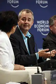 ![]() Barabási at the المنتدى الاقتصادي العالمي Annual Meeting of the New Champions in 2012 | |
