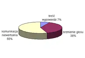أي أن مايصل من خلال المحادثة وجها لوجه مع شخص آخر يكون 7% فقط يكون بالكلمات و 38% بنبرة الصوت و 55% بلغة الجسد