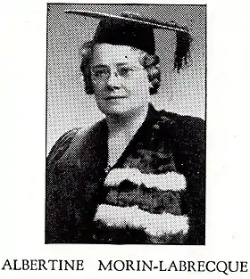 |CitationClass=تم تجاهله (مساعدة) - Charles Girard. "Albertine Morin-Labrecque". الموسوعة الكندية. مؤرشف من الأصل في 20 ديسمبر 2010. الوسيط