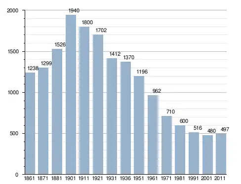 في سنة 1861 بلغ عدد السكان 1٬238 نسمة، وتطور العدد ليصل في سنة 2011 لـ 497 نسمة.