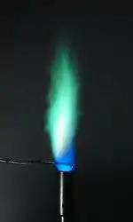 | أخضر | باريوم | BaCl2 (كلوريد الباريوم) |