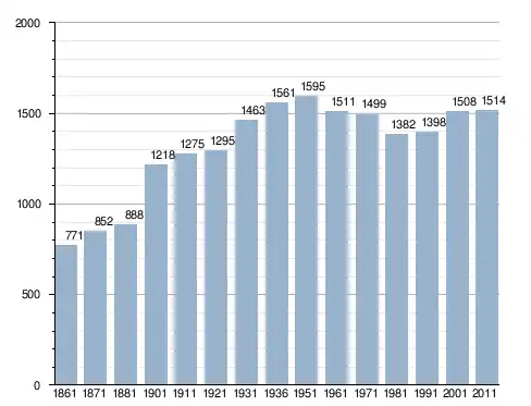 في سنة 1861 بلغ عدد السكان 771 نسمة، وتطور العدد ليصل في سنة 2011 لـ 1٬514 نسمة.
