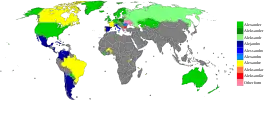 | أشكال أخرى | ألكسندرو، ساندرو، إسكندر، أليخاندرو، أليكس، أليس، أليساندرو، ألكسندرا، ألكسندريا |
