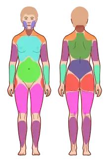 ![]() موقع نقاط العطاء التسعة المقترنة التي تشكل معايير 1990 الكلية الأمريكية لأمراض الروماتيزم من أجل الألم العضلي الليفي. موقع نقاط العطاء التسعة المقترنة التي تشكل معايير 1990 الكلية الأمريكية لأمراض الروماتيزم من أجل الألم العضلي الليفي. | |
