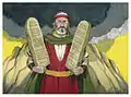 ثم أعطى موسى عند فراغه من الكلام معه في جبل سيناء لوحي الشهادة: لوحي حجر مكتوبين بإصبع الله (18)[6]