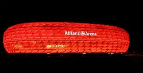 أليانز أرينا (بالألمانية: Allianz Arena) هو ملعب كرة القدم الرئيسي في مدينة ميونخ الألمانية وكان يلعب عليه قطبا المدينة بايرن ميونخ وميونخ 1860[4] حتى تم التوصل لاتفاق حل عقد إيجار نادي ميونخ 1860 في عام 2017 وأصبح الملعب ملكاً لنادي البايرن ميونخ وحده [3]، وقد تم افتتاحه في 31 مايو 2005،[5] و تبلغ طاقته الإستيعابية 67,812 متفرج (مباريات دولية) و 71,437 متفرج (مباريات محلية). ويعتبر من أجمل ملاعب العالم وأكثرها استيعابا للجماهير حيث تصل طاقته الإستيعابية إلى 80,074 متفرج.[2] وقد سمي الملعب بهذا الاسم نسبة إلى شركة التأمينات الألمانية أليانز، بعد قيامها بتمويل المشروع، وسيحمل الملعب اسم الشركة لمدة 30 سنة.