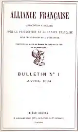 الآليانس فرانسيز أنشئت في باريس في 21 يوليو 1883 من قبل مجموعة من الرجال البارزين، بما في ذلك العالم لوي باستير,و الدبلوماسي فرديناند دي لسبس,و الكاتبين جول فيرن و إرنست رينان,و الناشر أرمان كولين.