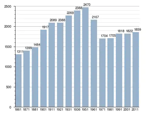 في سنة 1861 بلغ عدد السكان 1٬311 نسمة، وتطور العدد ليصل في سنة 2011 لـ 1٬859 نسمة.