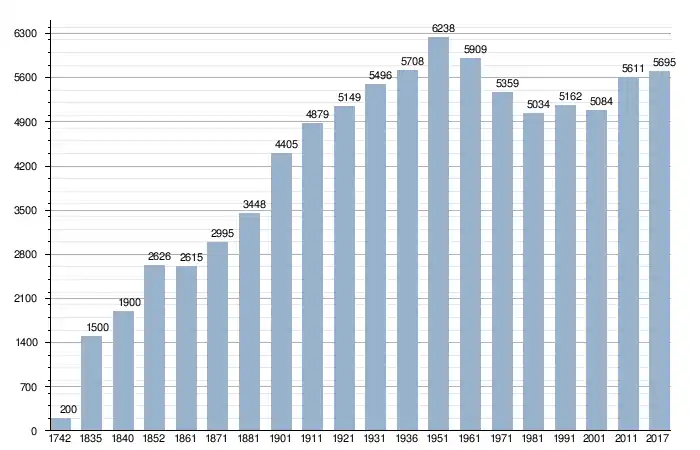 في سنة 1742 بلغ عدد السكان 200 نسمة، وتطور العدد ليصل في سنة 2017 لـ 5٬695 نسمة.