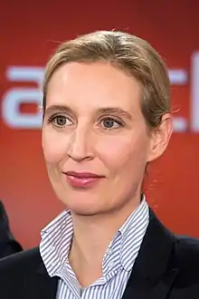 |CitationClass=تم تجاهله (مساعدة); تحقق من التاريخ في:|تاريخ أرشيف=(مساعدة) - Wildman, Sarah (June 5, 2017). "The German far right is faltering. They're hoping a lesbian mom can reenergize the party". Vox. مؤرشف من الأصل في 28 يوليو 2018. اطلع عليه بتاريخ 24 سبتمبر 2017. الوسيط