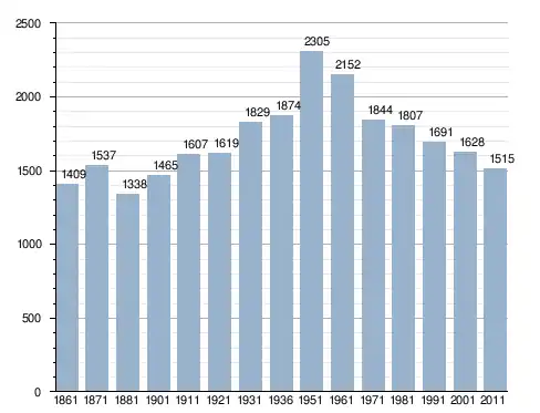 في سنة 1861 بلغ عدد السكان 1٬409 نسمة، وتطور العدد ليصل في سنة 2011 لـ 1٬515 نسمة.