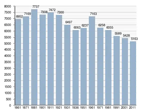 في سنة 1861 بلغ عدد السكان 6٬952 نسمة، وتطور العدد ليصل في سنة 2011 لـ 5٬163 نسمة.