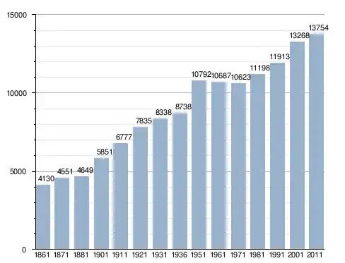في سنة 1861 بلغ عدد السكان 4٬130 نسمة، وتطور العدد ليصل في سنة 2011 لـ 13٬754 نسمة.