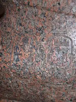 وهو معروف أيضًا من نقش على تمثال أسد من الجرانيت، ينتمي أصلاً إلى الفرعون المصري أمنحتب الثالث والآن في المتحف البريطاني.[2]
