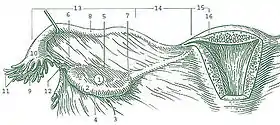 ![]() 1: المِبيض 2: الجانب الوَحشي | |