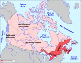 - المستعمرات والمناطق في كندا