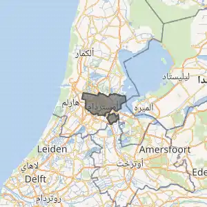 ![]() Highlighted position of Amsterdam in a municipal map of North Holland الموقع في شمال هولندا | |||