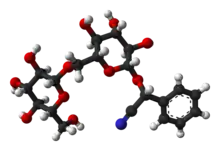 أميغدالين (من أميغدالي ἀμυγδαλή وتعني اللوز) C20H27NO11, هو غليكوسيد معزول مبدئيا من بذور شجرة Prunus dulcis، المعروف أيضا باسم "اللوز المر"، واستخلص من قبل بيير جان روبيكي وانطوان بوترون شارلار، في عام 1830.[3] وحقق فيه لاحقا يوستوس فون ليبيغ وفريدرش فولر في عام 1830. العديد من الأنواع الأخرى ذات الصلة في جنس الخوخ، بما في ذلك المشمش والكرز الأسود،[4] تحتوي على الأميغدالين.