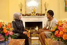 "آمل ان يكون اجتماعنا هذا أداة ضغط ضدّ إسرائيل كي توقف هجماتها فورا على غزة". كما وتحدثت عن "الدراما اللاإنسانية" في غزة، وحثّت المجتمع الدولي على وضع نهاية لما أسمته بـ "معاناة النساء والأطفال" في فلسطين. هذا وقد اجتمع كلّ المشاركات قبيل الاجتماع بممثّلي منظمات المساعدات الإنسانية العاملة في غزة. وقد كانت دائمة الاهتمام بأهل غزة وأطفالها. وكانت بذلك مترجمة لمشاعر ملايين الأمهات اللواتي يتألمن في جميع أرجاء العالم بهذا الوضع المأساوي حيث أثارت هذه المشكلة على الصعيد العالمي، كما أنها كانت سببا في إطلاق حملة كبيرة للمساعدات الإنسانية.