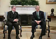 ![]() الجميل خلال لقائه رئيس الولايات المتحدة رونالد ريغان في 1982. | |