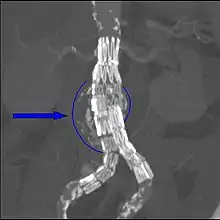 ![]() ت م م صورة إعادة بناء تمدد الشريان الأورطي البطني ت م م صورة إعادة بناء تمدد الشريان الأورطي البطني | |
