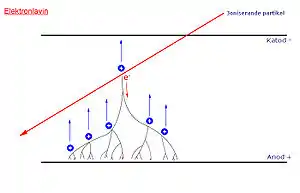 عند مرور شعاع مؤين داخل الأنبوب فإنه يؤين بعضا من جزيئات الغاز أو ذرات الغاز مكونة أيونات موجبة الشحنة وإلكترونات. يعمل الحقل الكهربائي الموجود في داخل الأنبوب الناشيئ بين المهبط والمصعد على تسريع الأيونات الموجبة إلى المهبط والإلكترونات إلى المصعد. وتكتسب الأيونات والإلكترونات سرعات عالية بحيث تؤين بالاصتدام عددا أكبر من ذرات الغاز مكونة شلالا من الشحنات.