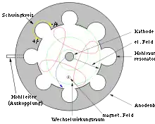 - كما يمكن تغيير تردد بعض الماجنترونات أي توليفها في حدود معينة بما يناسب عمل جهاز الرادار وذلك بعدة طرق منها تغيير شكل أحد الفجوات.